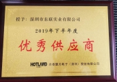 深圳市东联实业限公司以出色的表现,被客户授予“最佳新供应商”。该奖项为合泰盟方对所有供应商每年的一次综合评选。评选标准包括:产品质量,交付和服务三部分。